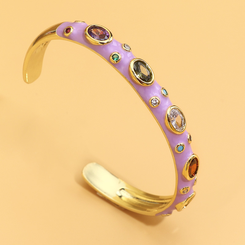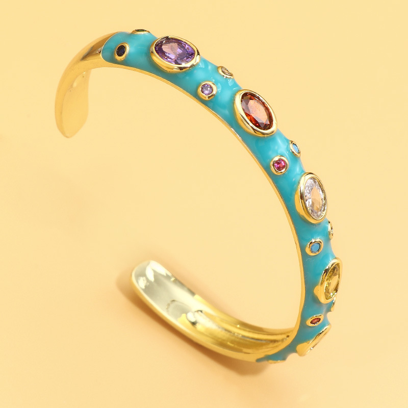 Elevate your jewelry collection with this fashionable piece that reflects your individuality and flair. Embrace the charm and elegance of our Exotic Multicolor Heavy Copper Inlaid Zircon Opening Bracelet today!