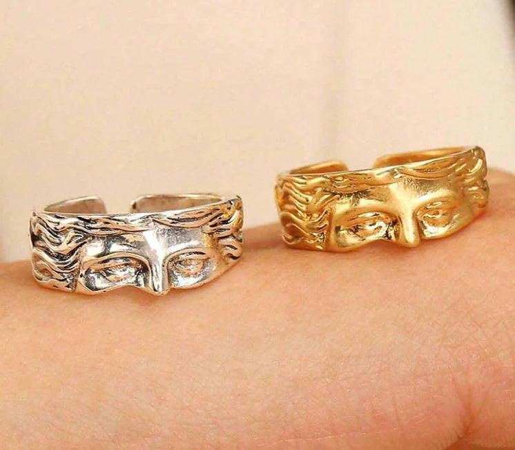 The Venus Half Face Ring combines sophisticated alloy craftsmanship with a bold yet elegant personality, making it a distinctive addition to any collection. Its unique half-face design reflects contemporary style, while the adjustable opening ensures a comfortable fit tailored to you. Perfect for those who appreciate refined details and versatile wear.